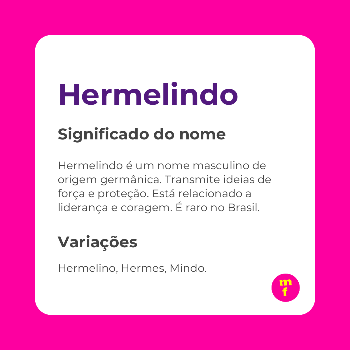 Com raízes germânicas, Hermelindo traz a energia de líderes e protetores, pessoas com perfil agregador, que inspiram confiança e segurança ao seu redor.